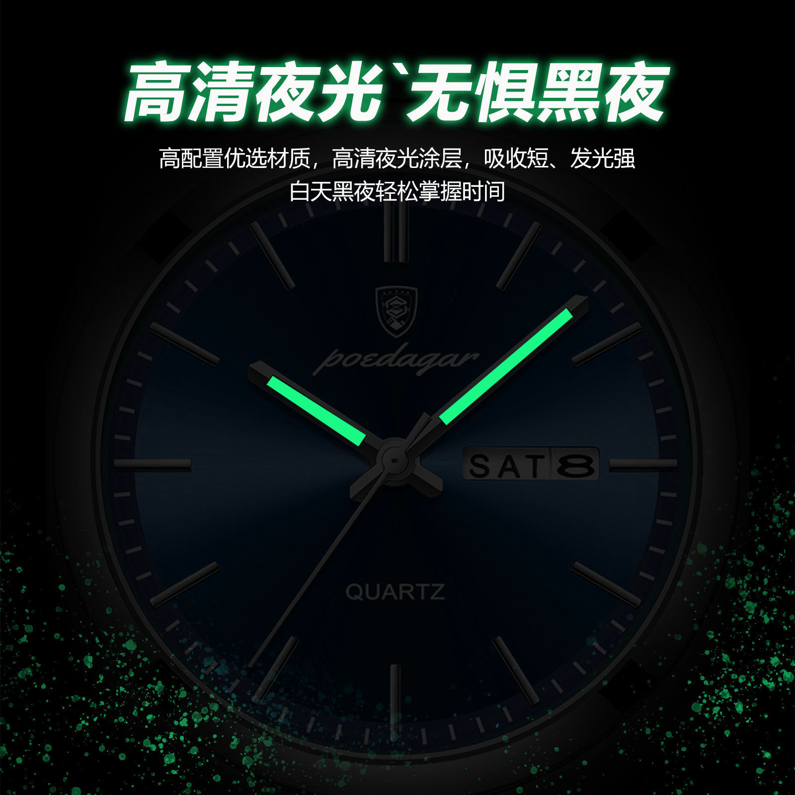 POEDAGAR 930 belt Luxury Watch for Men Leather Man Wristwatch Quartz- Silver