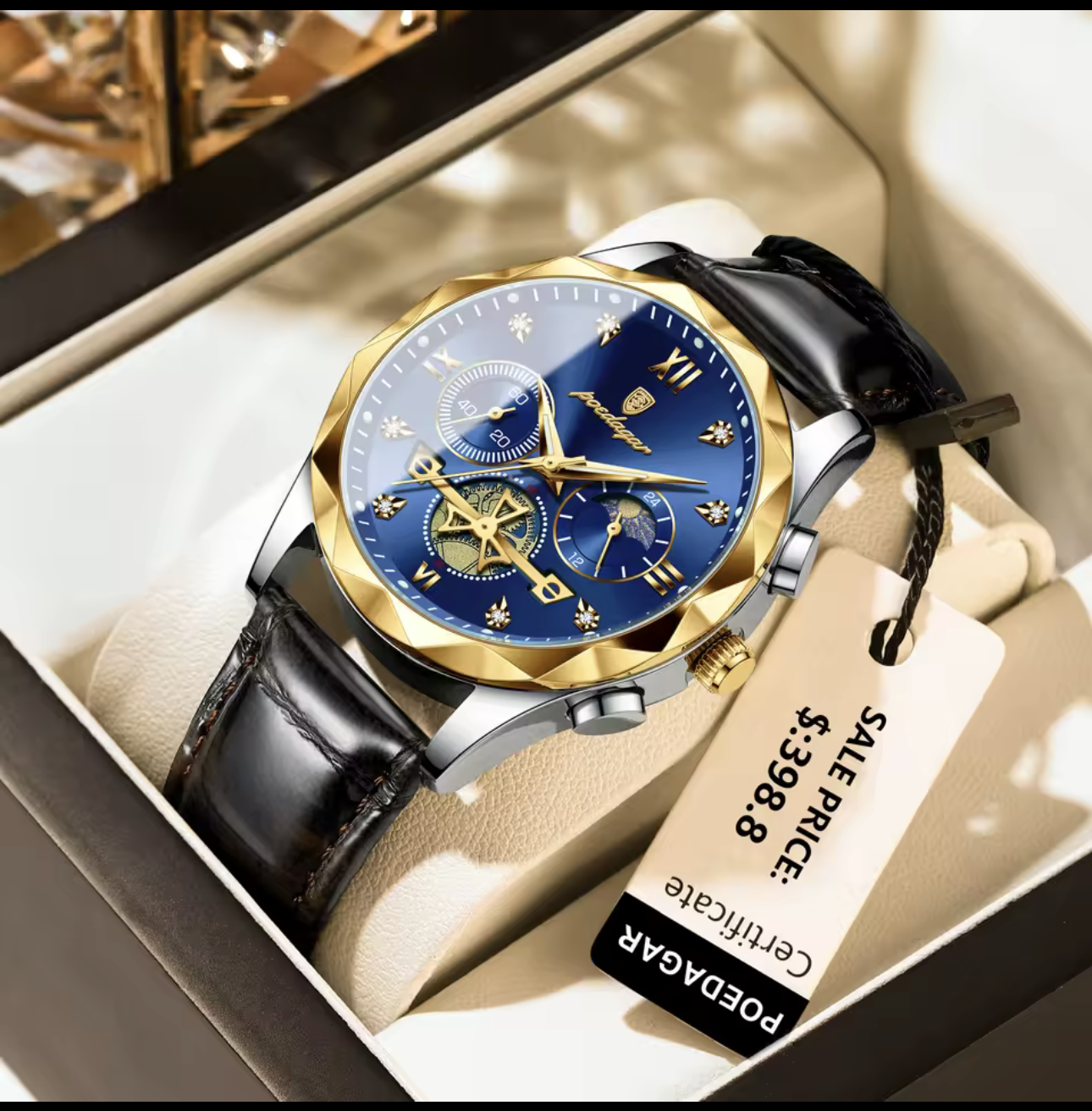 Luxury Binbond authentic men's watch waterproof night light dual calendar watch men's quartz watch diamond ceiling glass- Green